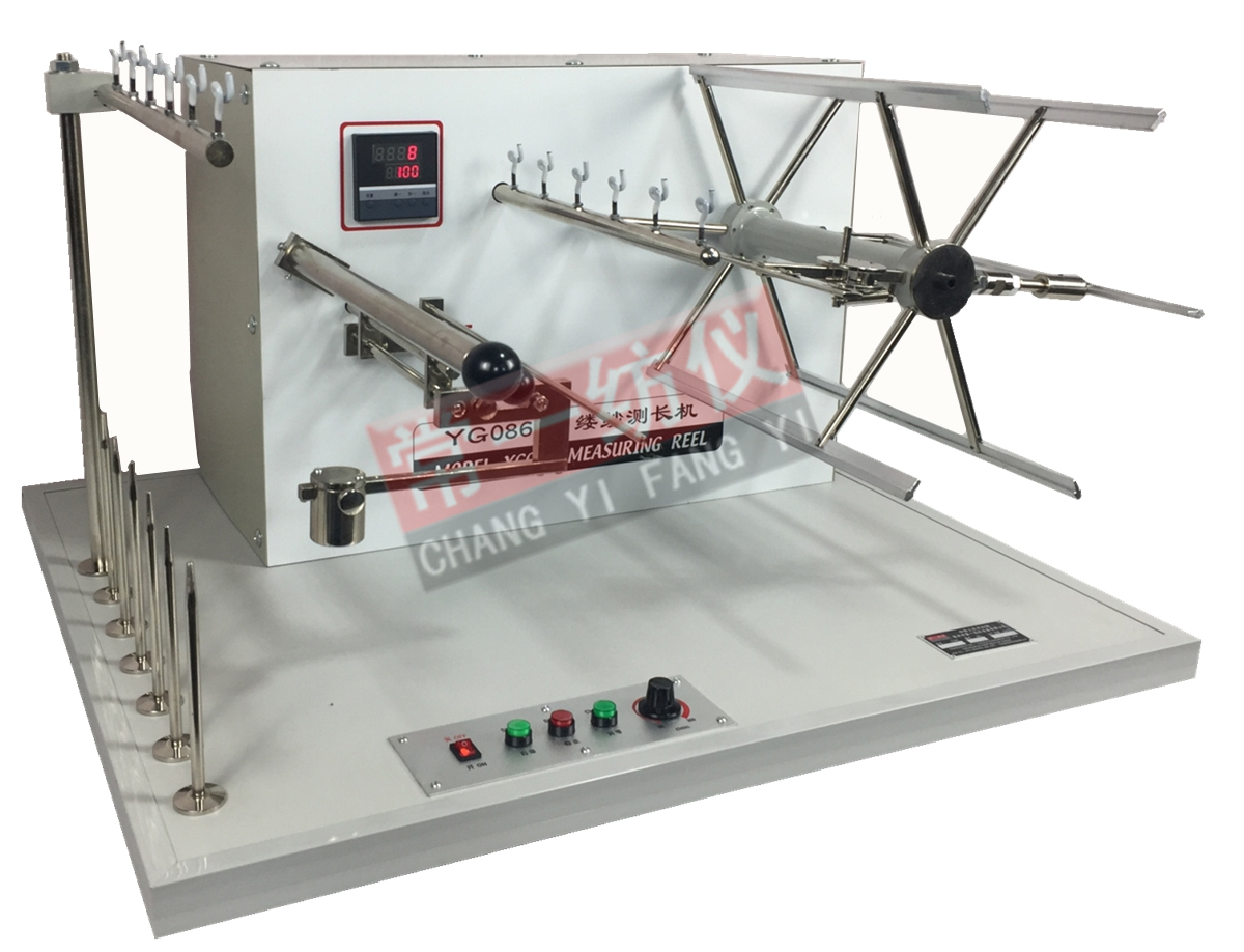 产品简介:仪器型号及名称: YG086C型缕纱测长机仪器用途:本仪器用来测定各种纱线的线密度(或英制支数),供测试缕纱强度试验用,也适用于化纤长丝变形丝的线密度测定。适用标准:GB/T4743《纱线线密度的测定 绞纱法》;GB/T14343《合成纤维长丝线密度试验方法》;GB/T6838《缝纫线…